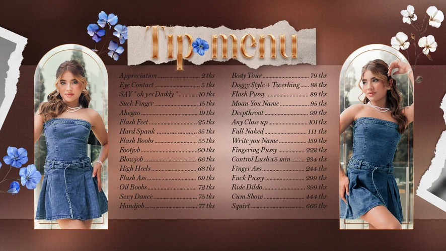 Topless, Ahegao, Ballo erotico, Sculacciate, Zoccolo di cammello, Twerk, Pompino, Ditalino, Masturbazione, Tittyfuck, Spettacolo con olio, Tacchi, Lattice, Feticismo dei piedi, Spogliarello, Linguaggio esplicito, Gola profonda, Dildo o Vibratore, Sega, Hardcore