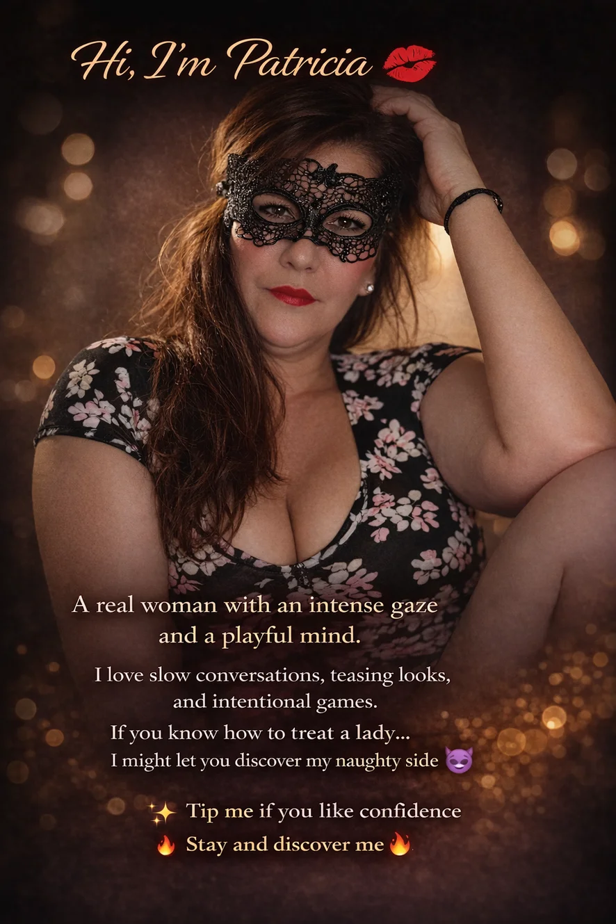 Hi, I’m Patricia 💋 A real woman with an intense gaze and a playful mind. I love slow conversations, teasing looks, and intentional games. If you know how to treat a lady… I might let you discover my naughty side 😈 ✨ Tip me if you like confidence 🔥 Stay and discover me