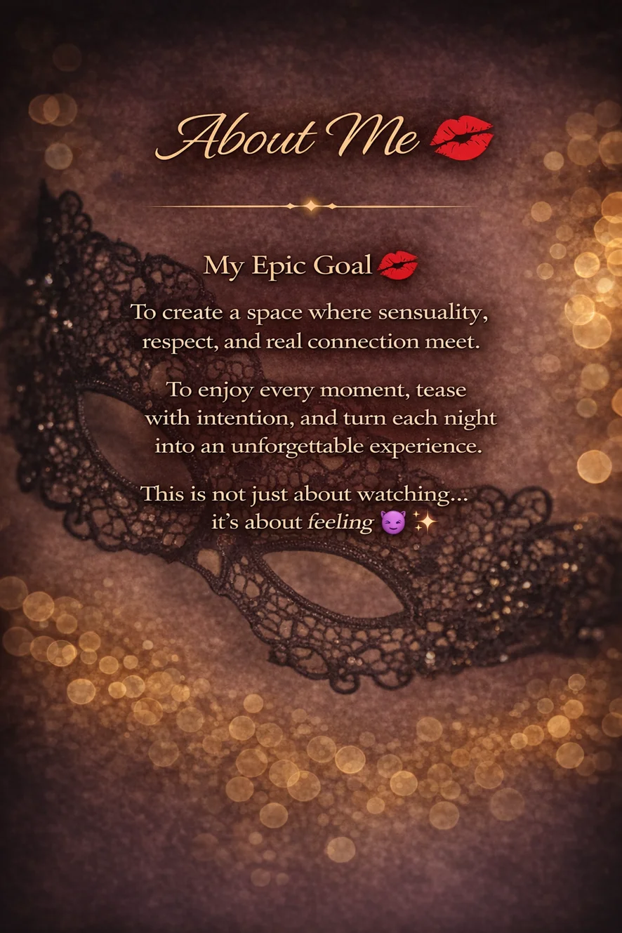 My Epic Goal 💋 To create a space where sensuality, respect, and real connection meet. To enjoy every moment, tease with intention, and turn each night into an unforgettable experience. This is not just about watching… it’s about feeling 😈✨