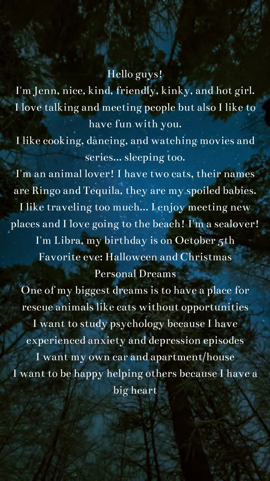 I'm passionate about learning, especially psychology and my dream of becoming a DJ. I adore nature and have a soft spot for numerology.