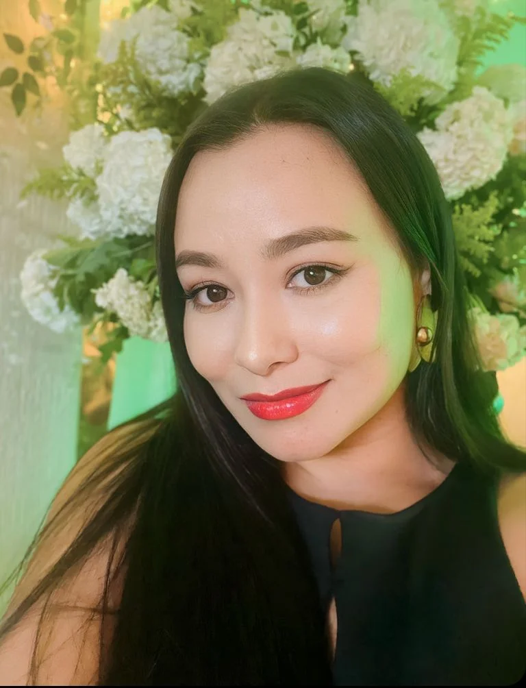 The woman is reflected in the beauty of a flower!